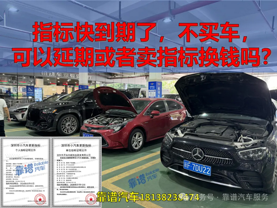 深圳市小汽车指标快到期了,不买车,可以进行指标延期。个人和公司指标都可以有条件的转让。个人或者公司指标,快到期了,不买车,可以进行指标延期,...