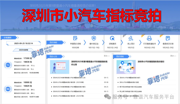 2025年9月23日,深圳市小汽车指标竞拍结果出炉,个人指标竞拍价格依旧在2万内,公司指标竞拍价格依旧在一万出头。指标竞拍价格对比以往,依旧...